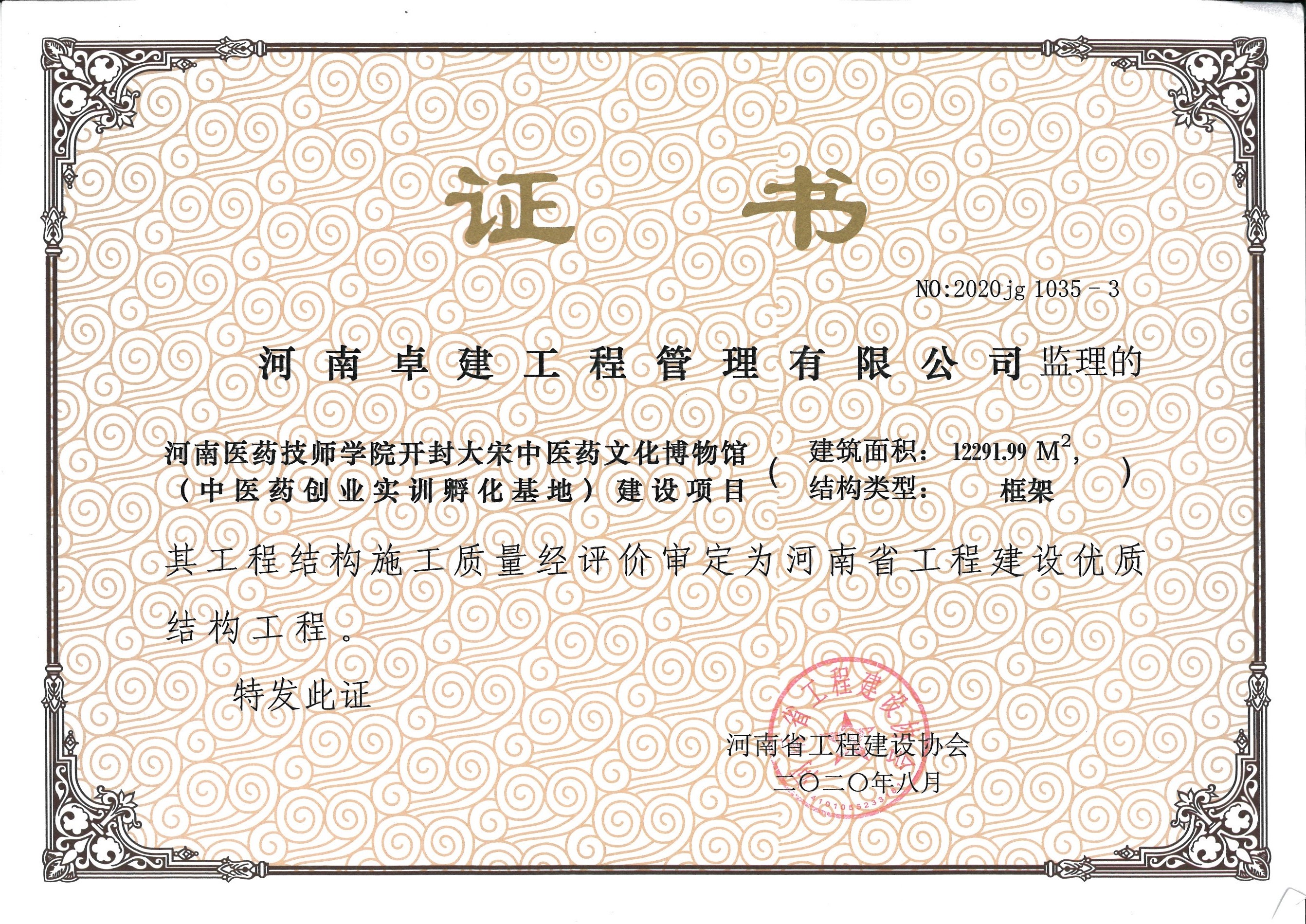 省工程建設協(xié)會評價審定為河南省工程建設優(yōu)質(zhì)結構工程